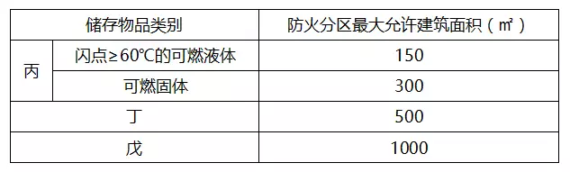 4、丙、丁、戊類物品庫房的防火分區(qū)允許最大建筑面積應(yīng)符合下表的規(guī)定。當(dāng)設(shè)置有火災(zāi)自動報警系統(tǒng)和自動滅火系統(tǒng)時,允許最大建筑面積可增加1倍;局部設(shè)置時,增加的面積可按該局部面積的1倍計算。